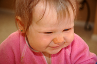Posted by: Darren Tabor at April 13, 2005 11:48 AMI swear she gets cuter with every picture. She's already practicing her ninja skills, I see. No idea why Jason makes the "Don't Get Any Ideas!" face when I show him the photos. :) Skylar, his 2 year old niece, is letting us live vicariously in that respect, hah.