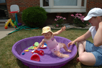 Rebecca has been talking about getting a small wadding pool for Hannah for almost a year. I personally didn’t see it as “must-have” item. How much fun can 4 inches of water be for a toddler, right? I figured that she would try it once, not like it, and then we would have a 4-foot plastic bowl in the garage for years to come.